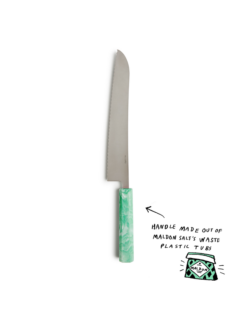 HANDLE: Made out of Maldon Sea Salt's waste plastic. The plastic is collected, washed, shredded and melted into the handle shape. No two handles will ever be the same, so yours is a one-off.