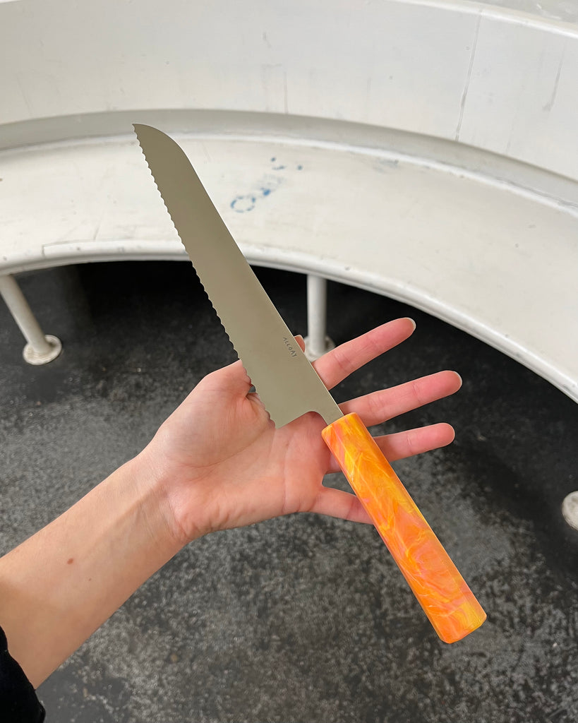This is our Everyday Bread knife. It is in perfect working order, there are just small cosmetic imperfections to the blade or the handle.