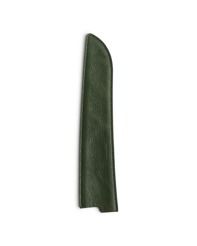 This is our Bread Knife leather sheath, handmade in England from goat and deer skin waste.