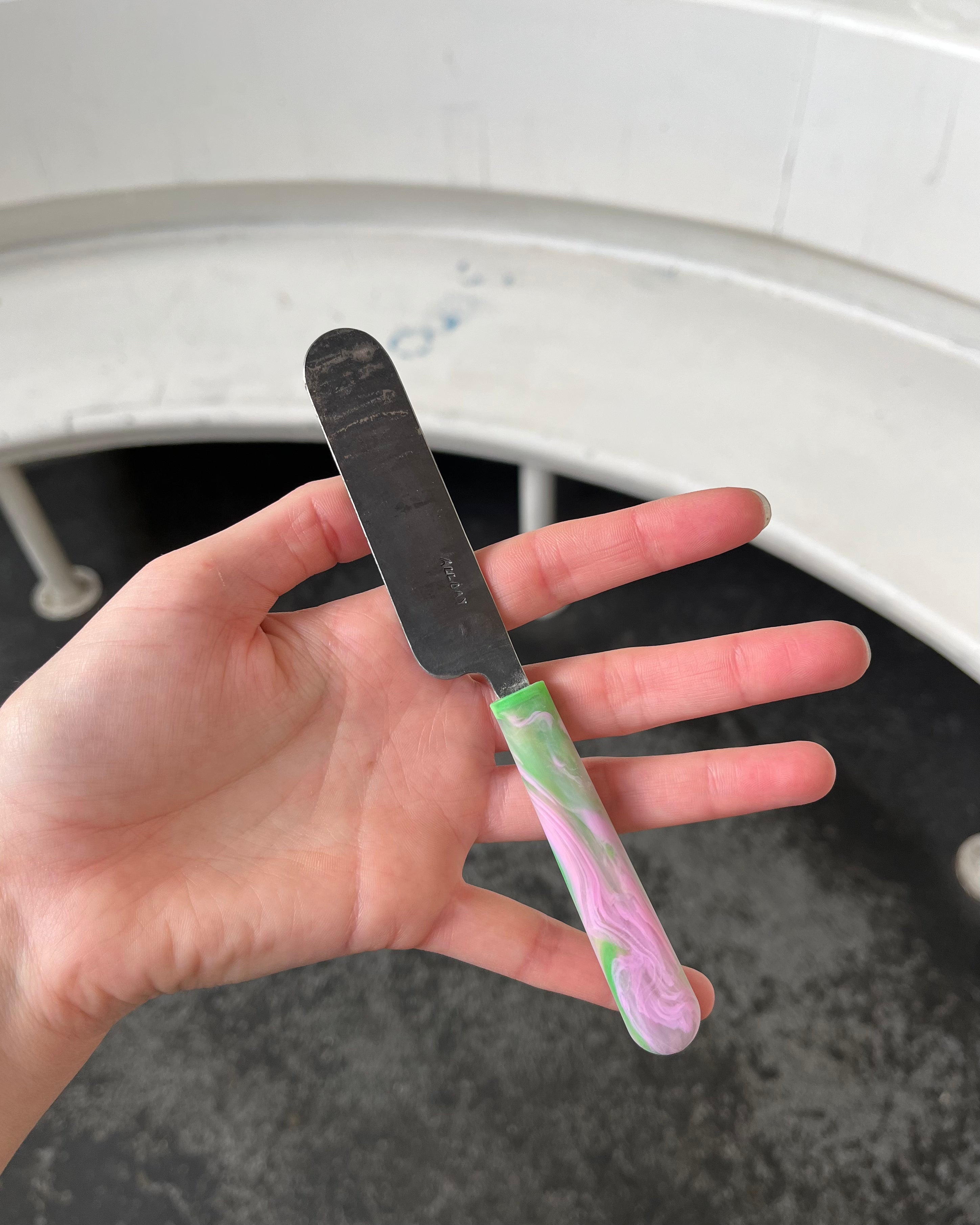 This is our Forged Butter knife. It is in perfect working order, there are just small cosmetic imperfections to the blade or the handle.