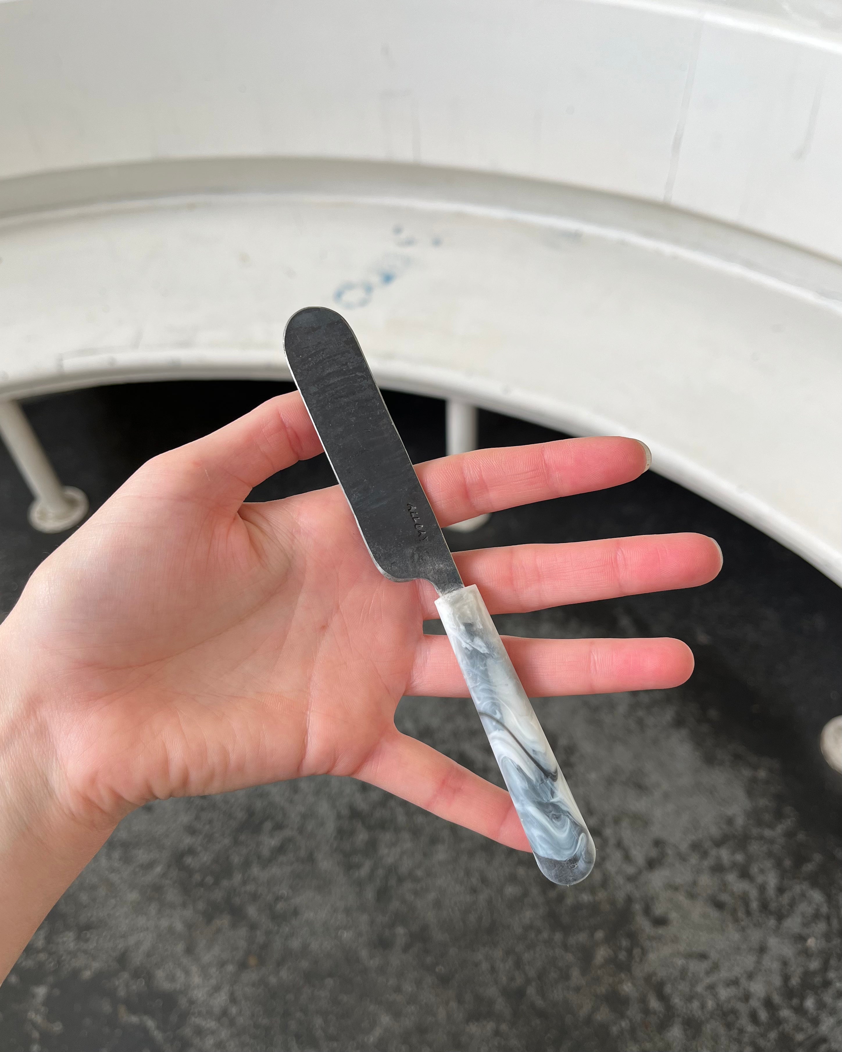 This is our Forged Butter knife. It is in perfect working order, there are just small cosmetic imperfections to the blade or the handle.