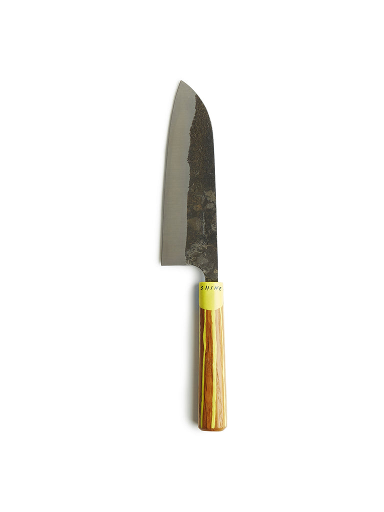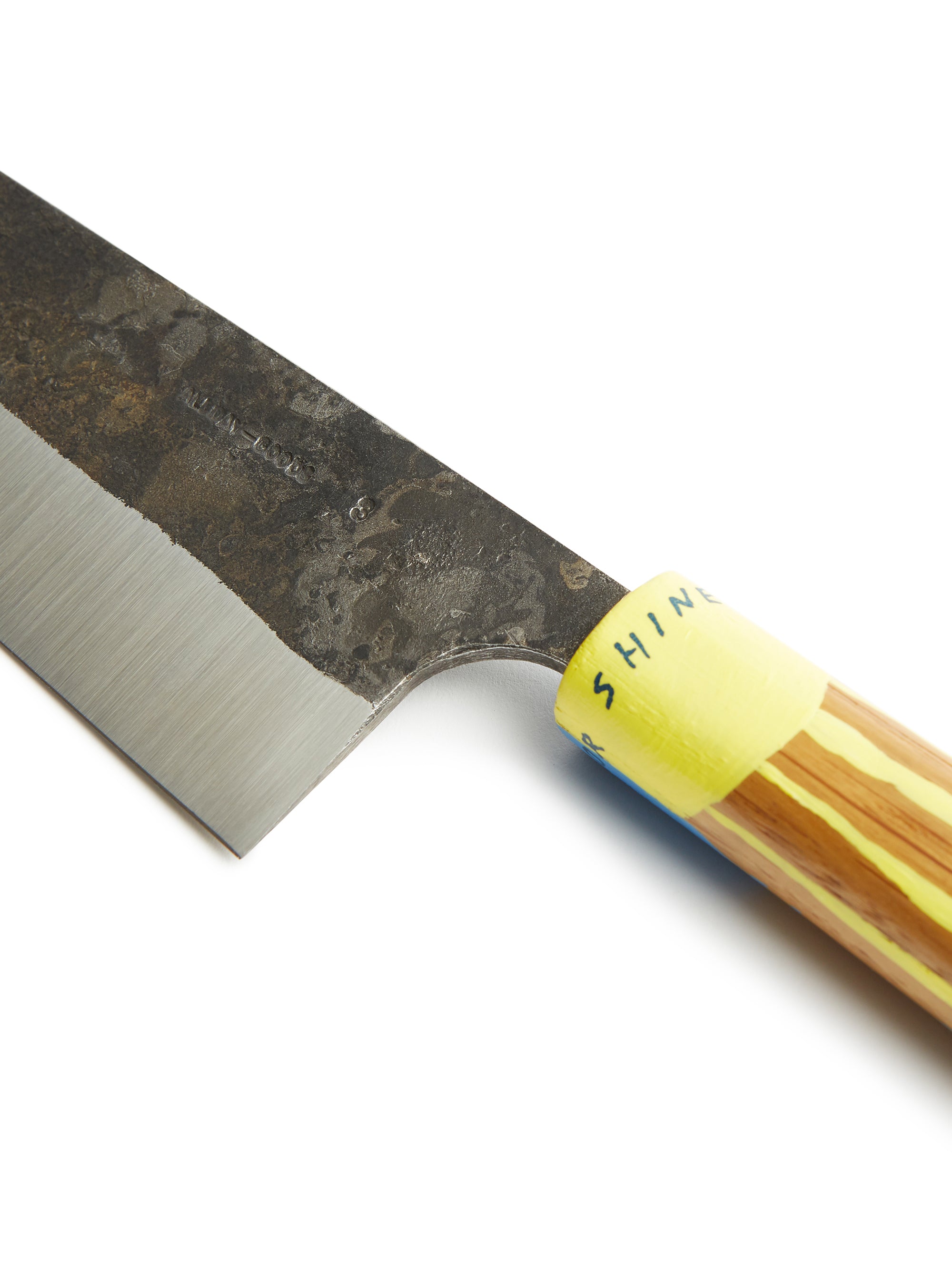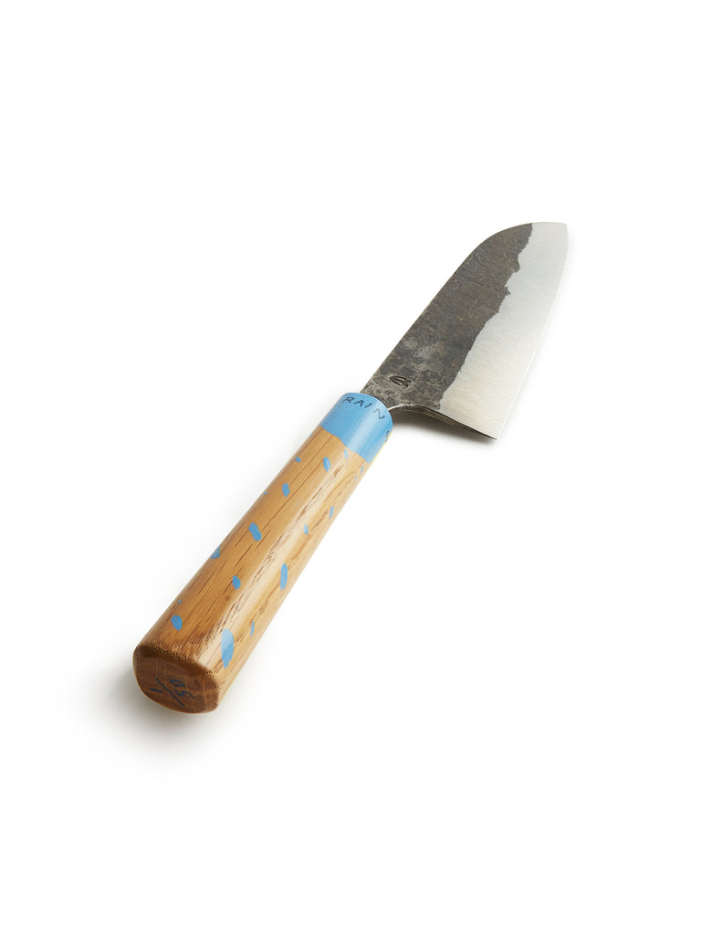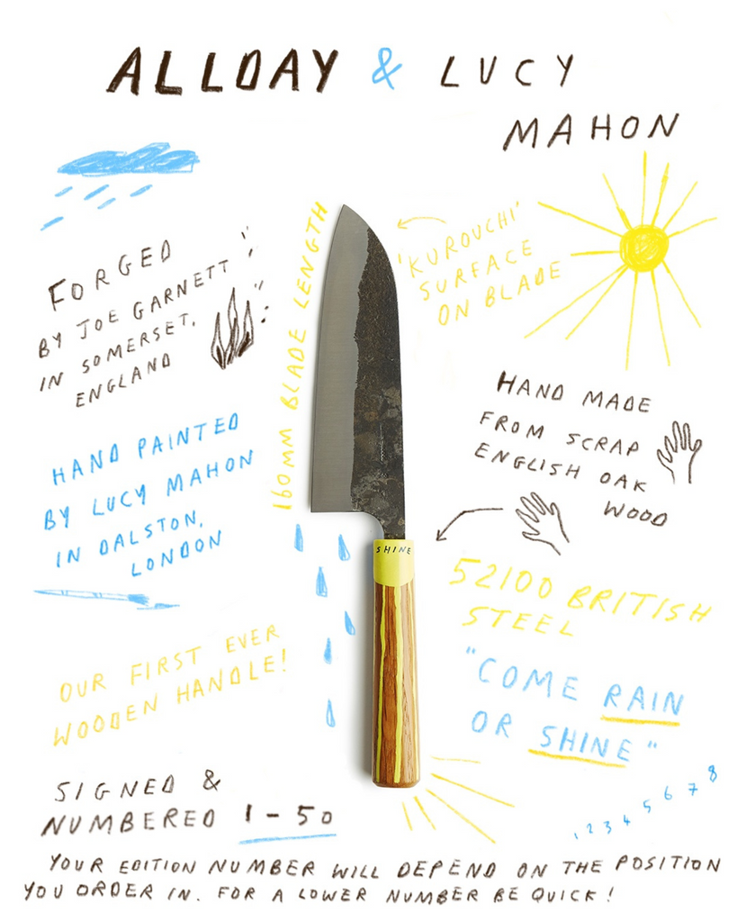 This is our Batch 6 Santoku knife, hand-forged in Somerset by blacksmiths Jimmy and Joe and hand-painted in London by Artist Lucy Mahon.