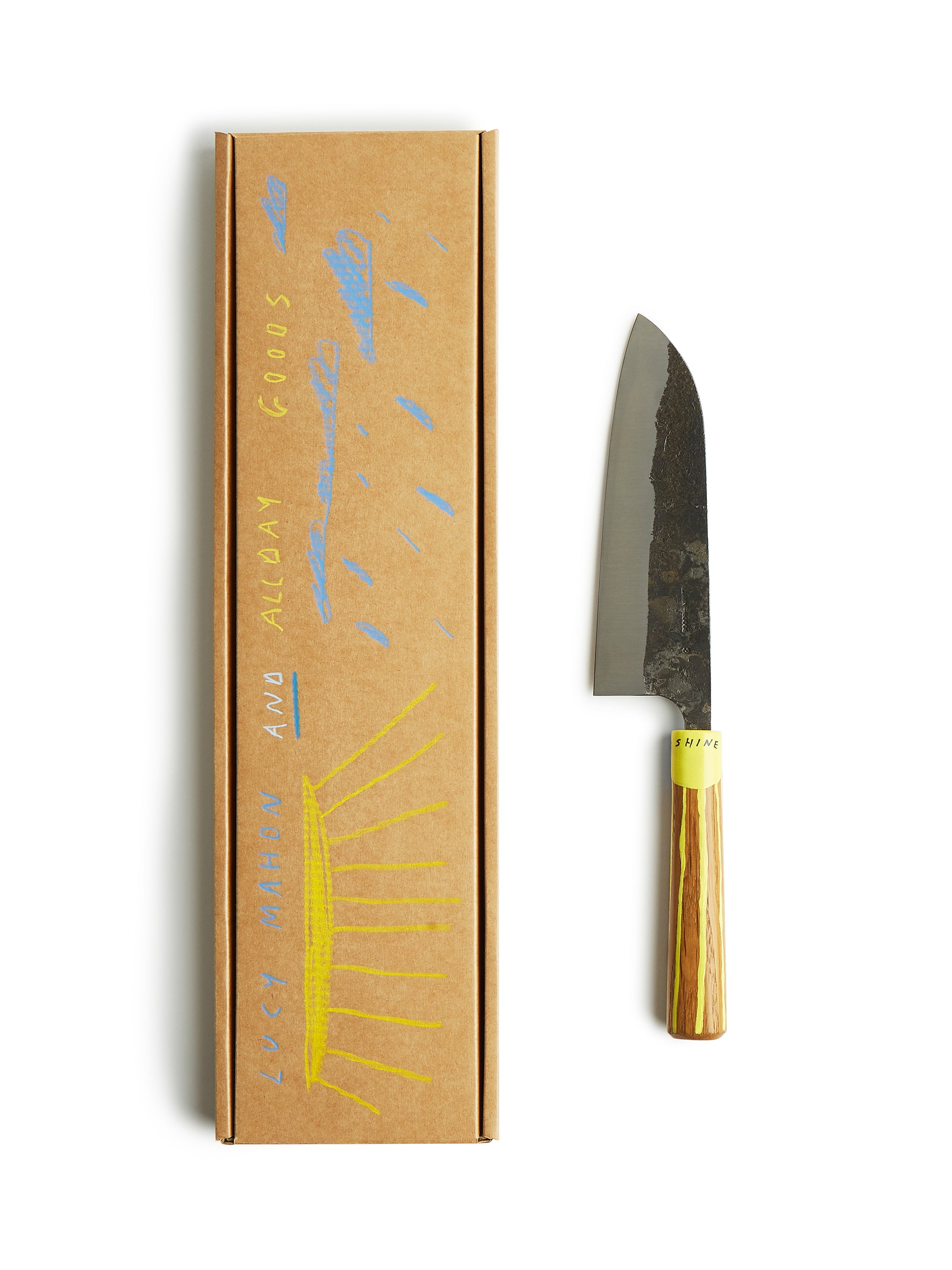 WHAT'S IN THE BOX: Inside your knife box you will receive a recipe notebook annotated by Lucy Mahon, knife care instructions, a penny for good luck, a limited edition sticker (and your knife!).