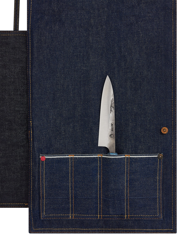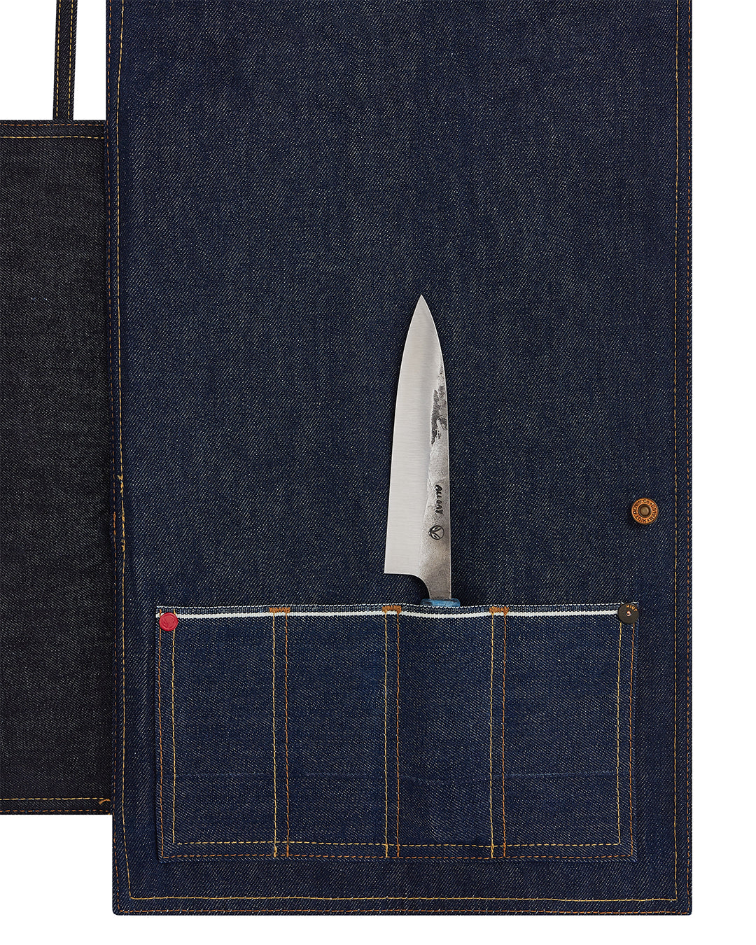 This is our selvedge denim knife wrap made in collaboration with Hiut Denim.