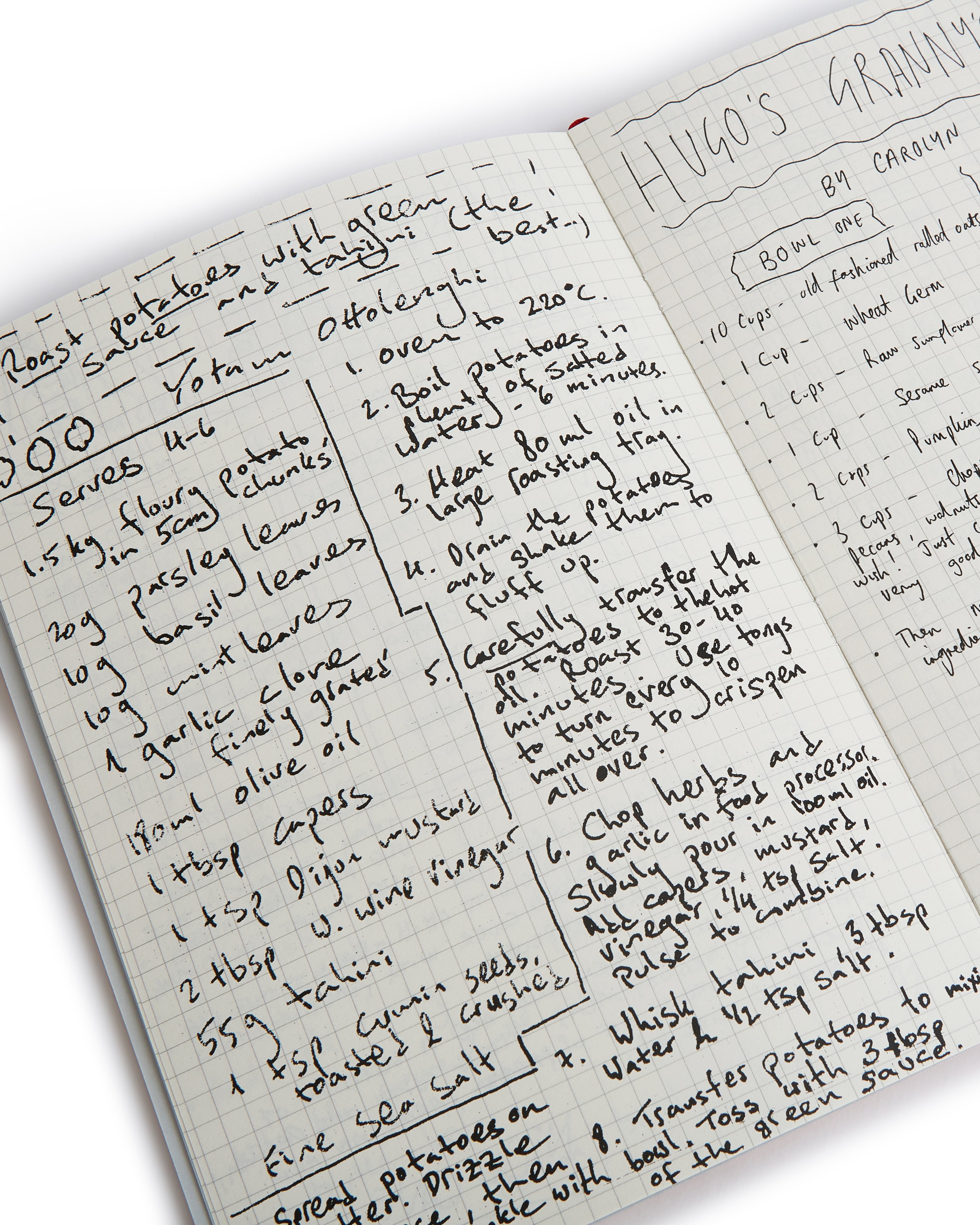 We designed this notebook for cooks to scribble in their recipe ideas. At the start of the book, you'll find five of our favourite chefs have written in recipes of dishes that remind them of home. Featuring Yotam Ottolenghi, Hannah Drye, Ben Lippett, Will Lewis and Hugo's granny.
