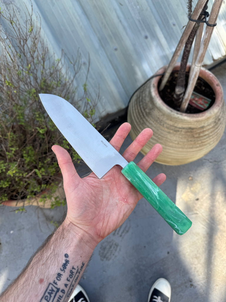 This is our all-rounder, Allday Goods x Maldon Santoku knife.