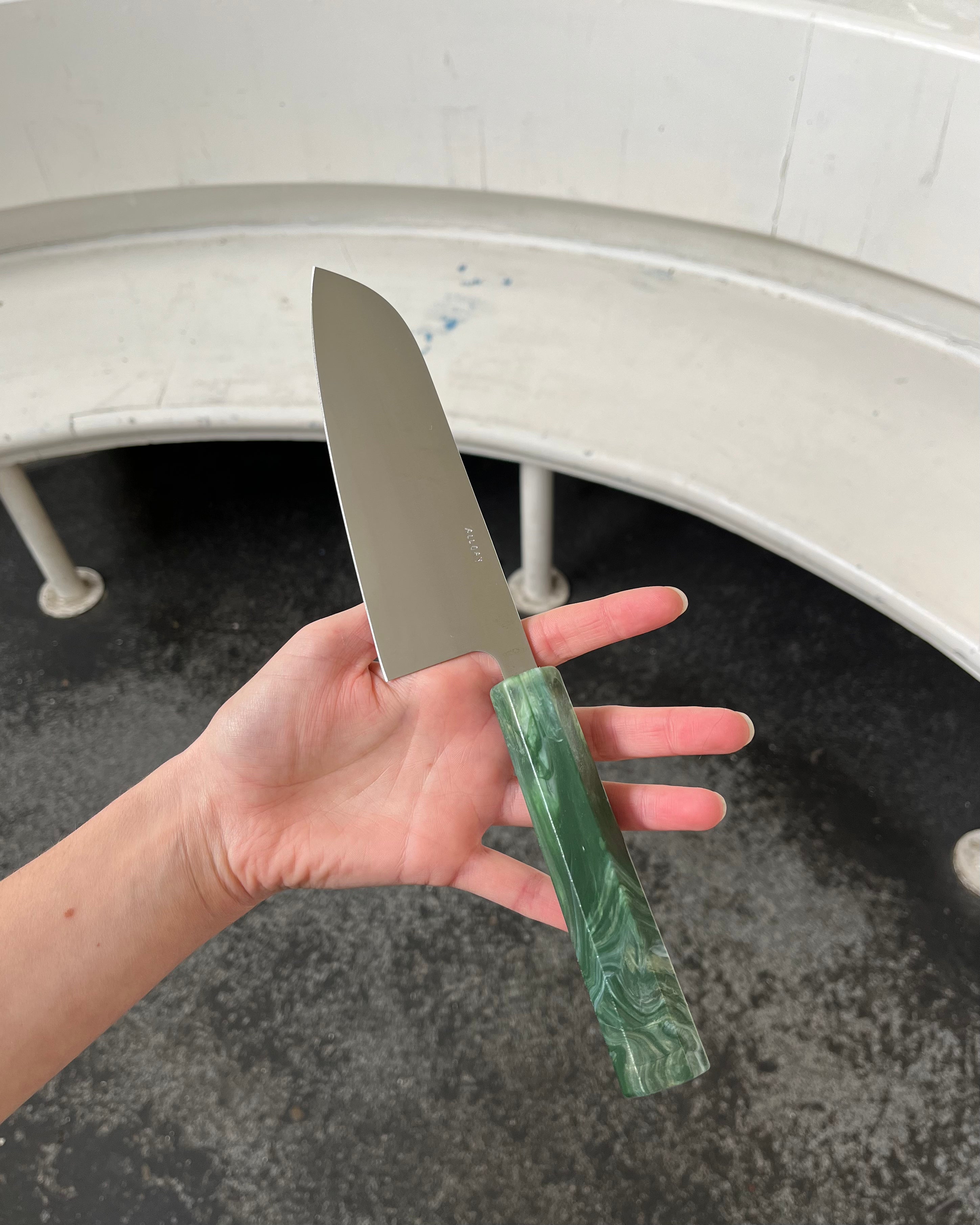 This is our Everyday Santoku knife. It is in perfect working order, this is just a new colour-way we have been testing. The handle is slightly darker on this one.